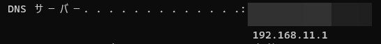 私の場合こんなかんじで、 192.168.11.1 が DNS サーバーの IP アドレスだった。